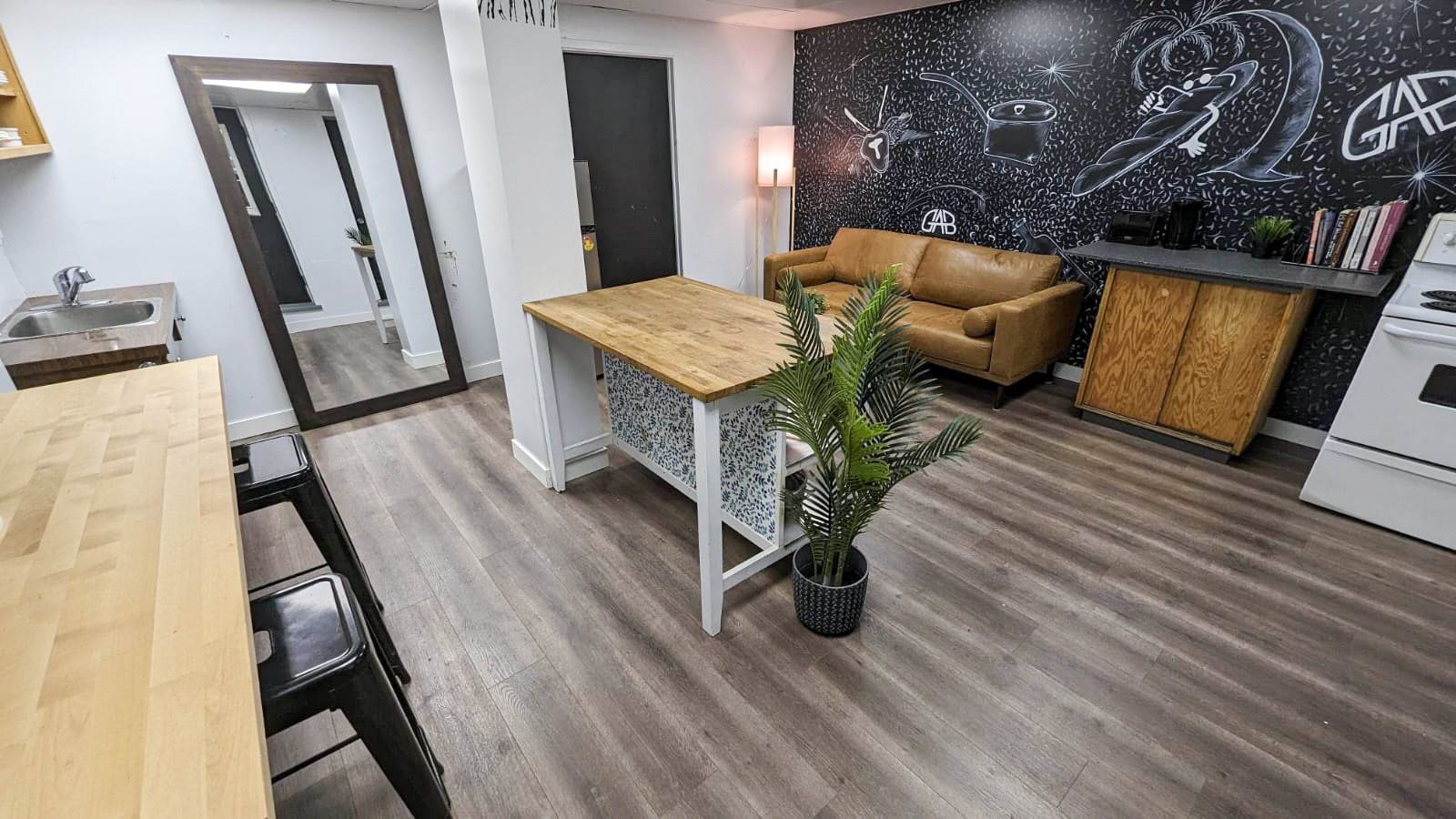 un coin salon confortable, une télé, une cuisine privée et plein de petits détails artistiques funky créés par notre équipe.